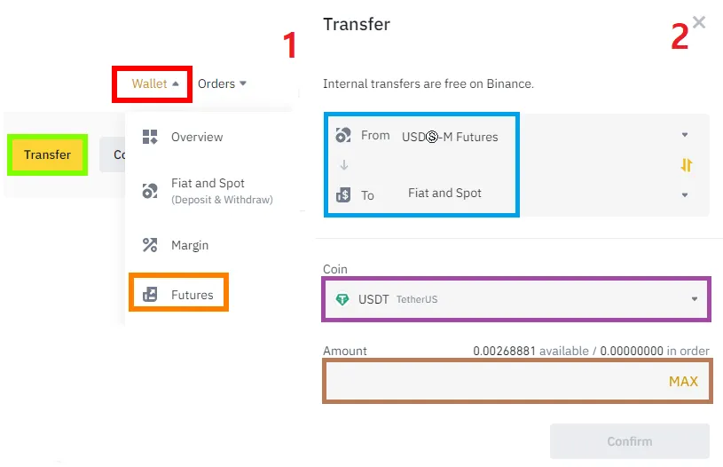 Wallet - Futures - Transfer - ( USD-M → Spot ) - USDT - 금액 입력 - Confirm