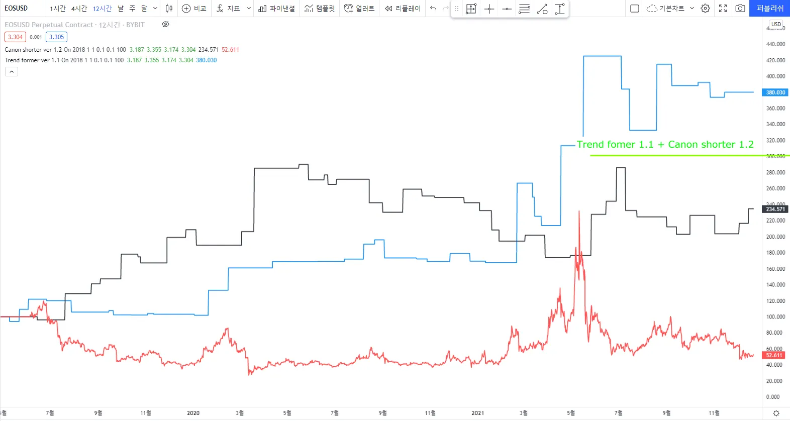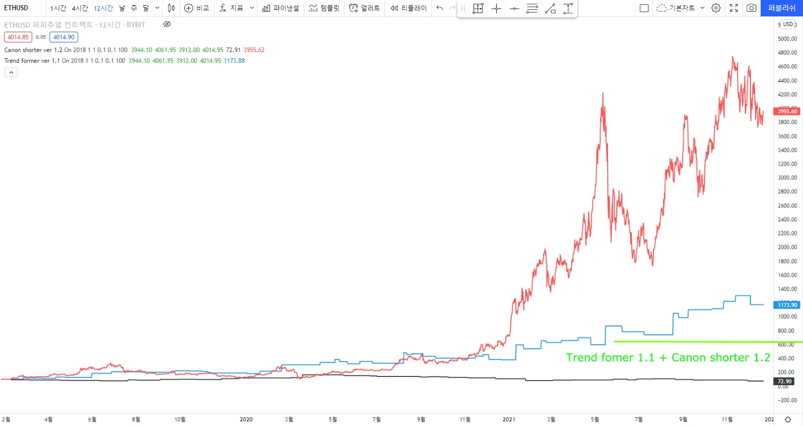 초록선은 Trend former 1.1과 Canon shorter 1.2의 현재 시드를 합한 평균 값입니다.