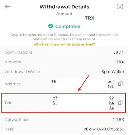 Recent Withdrawals를 보면 최근 전송 기록부터 나와있습니다. TXID를 확인하세요.