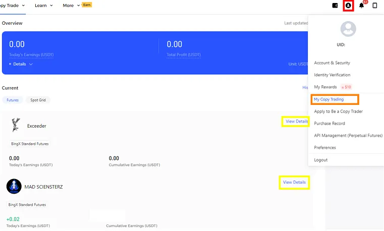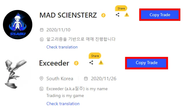 Copy Trade를 클릭하세요.