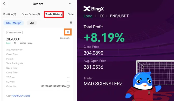 Share을 누르면 거래 기록을 공유할 수 있도록 사진 파일이 제공됩니다.