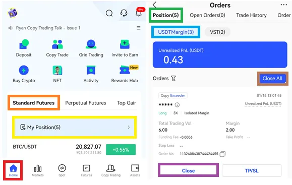 홈 → 포지션 → Standard Futures - My Position - Position - USDTMargin 보유포지션