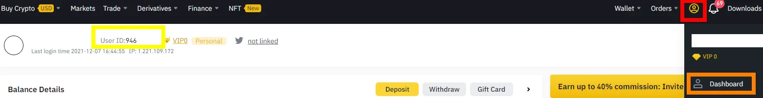 프로필 - Dashboard - User ID (= UID)를 확인할 수 있습니다.